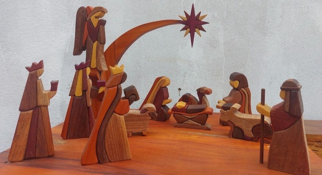vice-campeão. Seu presépio todo feito em madeira, surpreende pelos