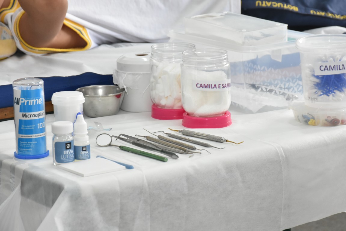 Toda a equipe passou por uma capacitação prévia antes de iniciar os atendimentos. Ações de prevenção e entrega de kits de saúde bucal foram entregues a todas as crianças.